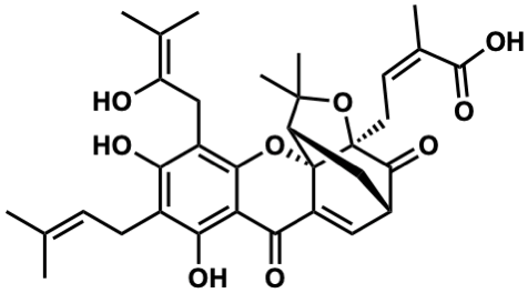 CC(C)=CCc1c(O)c(CC(O)=C(C)C)c2c(c1O)C(=O)C1=C[C@@H]3C[C@H]4C(C)(C)O[C@@](C/C=C(/C)C(=O)O)(C3=O)[C@@]14O2 |