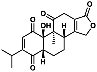 InChI=1S/C20H22O6/c1-9(2)10-6-16(22)20(25)14(17(10)23)5-4-13-12-8-26-18(24)11(12)7-15(21)19(13,20)3/h6,9,13-14,25H,4-5,7-8H2,1-3H3/t13-,14+,19+,20-/m0/s1 |