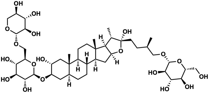 InChI=1S/C44H74O19/c1-18(15-57-40-37(54)34(51)32(49)28(14-45)61-40)7-10-44(56)19(2)30-27(63-44)12-23-21-6-5-20-11-26(24(46)13-43(20,4)22(21)8-9-42(23,30)3)60-41-38(55)35(52)33(50)29(62-41)17-59-39-36(53)31(48)25(47)16-58-39/h18-41,45-56H,5-17H2,1-4H3/t18-,19+,20+,21-,22+,23+,24-,25-,26-,27+,28-,29-,30+,31+,32-,33-,34+,35+,36-,37-,38-,39+,40-,41-,42+,43+,44-/m1/s1 |