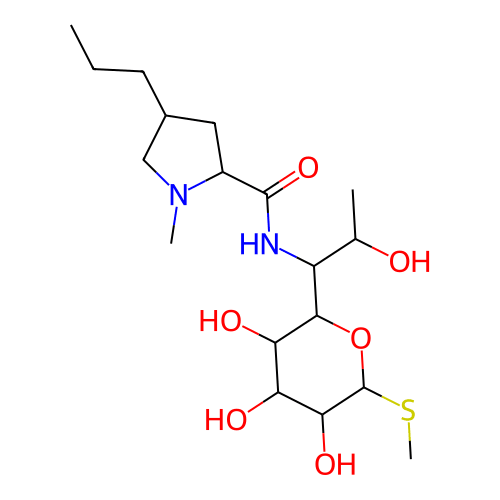 CCCC1CC(C(=O)NC(C(C)O)C2OC(SC)C(O)C(O)C2O)N(C)C1 |