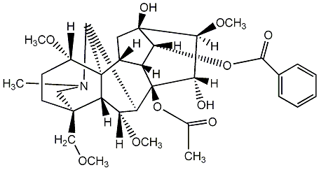 InChI=1S/C33H45NO10/c1-17(35)44-33-21-19(14-31(38,28(42-6)26(33)36)27(21)43-29(37)18-10-8-7-9-11-18)32-20(40-4)12-13-30(16-39-3)15-34(2)25(32)22(33)23(41-5)24(30)32/h7-11,19-28,36,38H,12-16H2,1-6H3/t19-,20+,21-,22+,23-,24-,25-,26+,27-,28+,30+,31-,32+,33+/m1/s1 |