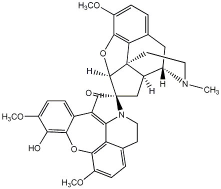 COc1ccc2c(c1O)Oc1c(OC)ccc3c1C1=C2C(=O)[C@]2(C[C@@H]4[C@@H]5Cc6ccc(OC)c7c6[C@]4(CCN5C)[C@@H]2O7)N1CC3 |