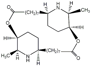 InChI=1S/C28H50N2O4/c1-21-25-19-17-23(29-21)13-9-5-3-8-12-16-28(32)34-26-20-18-24(30-22(26)2)14-10-6-4-7-11-15-27(31)33-25/h21-26,29-30H,3-20H2,1-2H3/t21-,22-,23+,24+,25-,26-/m0/s1 |