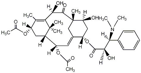 CC(=O)O[C@H]1C[C@H]2[C@@H](OC(C)=O)/C=C3C[C@](C)(C(=O)[C@H](O)C(=C1C)C2(C)C)[C@@H](O)C[C@@H]3OC(=O)[C@H](O)[C@H](c1ccccc1)N(C)C |