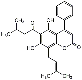 Mammeisin Mammea A/AA 5,7-Dihydroxy-8-(3-methyl-2-butenyl)-6-(3-methylbutyryl)-4-phenylcoumarin |