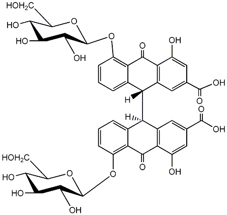 InChI=1S/C42H38O20/c43-11-23-31(47)35(51)37(53)41(61-23)59-21-5-1-3-15-25(17-7-13(39(55)56)9-19(45)27(17)33(49)29(15)21)26-16-4-2-6-22(60-42-38(54)36(52)32(48)24(12-44)62-42)30(16)34(50)28-18(26)8-14(40(57)58)10-20(28)46/h1-10,23-26,31-32,35-38,41-48,51-54H,11-12H2,(H,55,56)(H,57,58)/t23-,24-,25-,26-,31+,32+,35+,36+,37-,38-,41-,42-/m1/s1 |