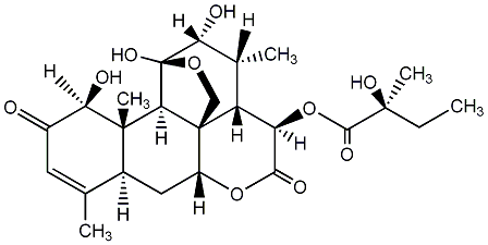 CC[C@](C)(O)C(=O)O[C@H]1C(=O)O[C@@H]2C[C@H]3C(C)=CC(=O)[C@@H](O)[C@]3(C)[C@H]3[C@@]4(O)OC[C@]32[C@@H]1[C@@H](C)[C@H]4O |