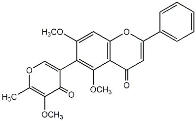 5-O-Methylhoslundin 5,7-Dimethoxy-6-(5-methoxy-6-methyl-4-oxo-4H-pyran-3-yl)-2-phenyl-4H-1-benzopyran-4-one |