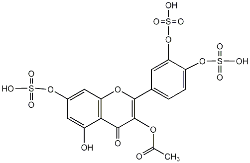 InChI=1S/C17H12O17S3/c1-7(18)30-17-15(20)14-10(19)5-9(32-35(21,22)23)6-13(14)31-16(17)8-2-3-11(33-36(24,25)26)12(4-8)34-37(27,28)29/h2-6,19H,1H3,(H,21,22,23)(H,24,25,26)(H,27,28,29) |