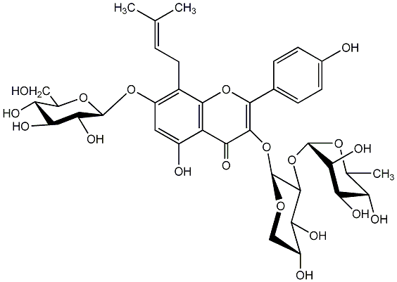 CC(C)=CCc1c(O[C@@H]2OC(CO)[C@@H](O)[C@H](O)C2O)cc(O)c2c(=O)c(O[C@@H]3OC[C@@H](O)C(O)C3O[C@@H]3OC(C)[C@H](O)C(O)[C@@H]3O)c(-c3ccc(O)cc3)oc12 |