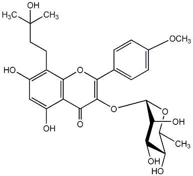 COc1ccc(-c2oc3c(CCC(C)(C)O)c(O)cc(O)c3c(=O)c2O[C@@H]2OC(C)[C@H](O)C(O)[C@@H]2O)cc1 |