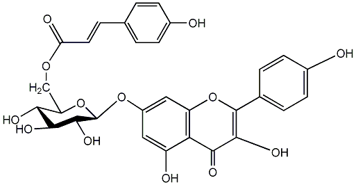 O=C(/C=C/c1ccc(O)cc1)OCC1O[C@@H](Oc2cc(O)c3c(=O)c(O)c(-c4ccc(O)cc4)oc3c2)C(O)[C@@H](O)[C@@H]1O |