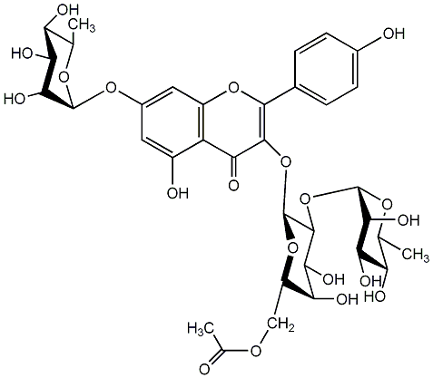 InChI=1S/C35H42O20/c1-11-21(39)25(43)28(46)33(49-11)51-16-8-17(38)20-18(9-16)52-30(14-4-6-15(37)7-5-14)31(24(20)42)54-35-32(27(45)23(41)19(53-35)10-48-13(3)36)55-34-29(47)26(44)22(40)12(2)50-34/h4-9,11-12,19,21-23,25-29,32-35,37-41,43-47H,10H2,1-3H3/t11-,12+,19-,21+,22+,23+,25+,26+,27+,28-,29+,32+,33+,34+,35+/m1/s1 |