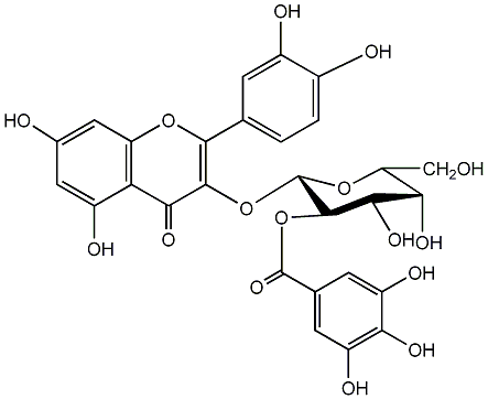 O=C(O[C@@H]1C(O)[C@@H](O)C(CO)O[C@H]1Oc1c(-c2ccc(O)c(O)c2)oc2cc(O)cc(O)c2c1=O)c1cc(O)c(O)c(O)c1 |