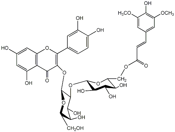 InChI=1S/C38H40O21/c1-52-21-7-14(8-22(53-2)27(21)45)3-6-25(44)54-13-24-29(47)31(49)33(51)37(57-24)59-36-32(50)28(46)23(12-39)56-38(36)58-35-30(48)26-19(43)10-16(40)11-20(26)55-34(35)15-4-5-17(41)18(42)9-15/h3-11,23-24,28-29,31-33,36-43,45-47,49-51H,12-13H2,1-2H3/b6-3+/t23-,24+,28-,29+,31-,32+,33?,36-,37-,38-/m0/s1 |