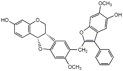 InChI=1S/C32H26O7/c1-35-25-14-27-21(23-16-37-26-12-19(33)8-9-20(26)32(23)39-27)10-18(25)11-30-31(17-6-4-3-5-7-17)22-13-24(34)29(36-2)15-28(22)38-30/h3-10,12-15,23,32-34H,11,16H2,1-2H3/t23-,32-/m1/s1 |