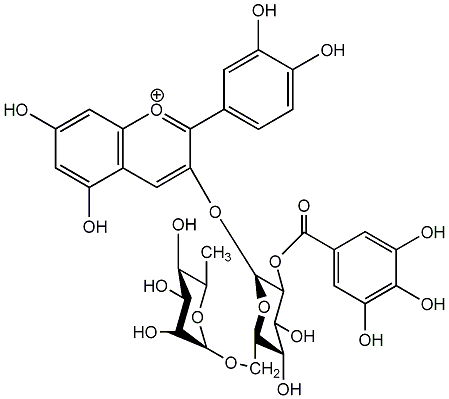 InChI=1S/C34H34O19/c1-11-24(41)27(44)29(46)33(49-11)48-10-23-26(43)28(45)31(53-32(47)13-5-19(39)25(42)20(40)6-13)34(52-23)51-22-9-15-17(37)7-14(35)8-21(15)50-30(22)12-2-3-16(36)18(38)4-12/h2-9,11,23-24,26-29,31,33-34,41,43-46H,10H2,1H3,(H6-,35,36,37,38,39,40,42,47)/p+1/t11-,23+,24-,26+,27-,28+,29+,31-,33+,34+/m0/s1 |