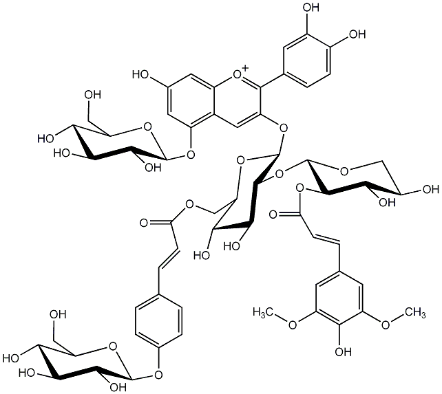 Cyanidin 3-O-[2''-O-(2'''-O-(sinapoyl) xylosyl) 6''-O-(p-O-(glucosyl) p-coumaroyl) glucoside] 5-O-glucoside |