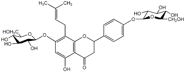 CC(C)=CCc1c(O[C@@H]2OC(CO)[C@@H](O)[C@H](O)C2O)cc(O)c2c1OC(c1ccc(O[C@@H]3OC(CO)[C@@H](O)C(O)C3O)cc1)CC2=O |