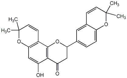 InChI=1S/C25H24O5/c1-24(2)9-7-15-11-14(5-6-19(15)29-24)20-12-17(26)22-18(27)13-21-16(23(22)28-20)8-10-25(3,4)30-21/h5-11,13,20,27H,12H2,1-4H3/t20-/m0/s1 |