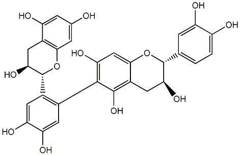 InChI=1S/C30H26O12/c31-12-4-18(33)15-8-24(39)30(42-25(15)5-12)14-7-21(36)20(35)6-13(14)27-22(37)10-26-16(28(27)40)9-23(38)29(41-26)11-1-2-17(32)19(34)3-11/h1-7,10,23-24,29-40H,8-9H2/t23-,24-,29+,30+/m0/s1 |