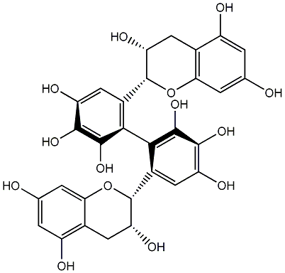 Oc1cc(O)c2c(c1)O[C@H](c1cc(O)c(O)c(O)c1-c1c([C@H]3Oc4cc(O)cc(O)c4C[C@H]3O)cc(O)c(O)c1O)[C@H](O)C2 |