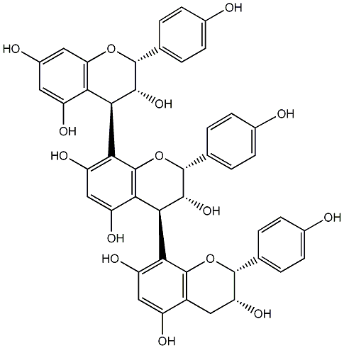 Oc1ccc([C@H]2Oc3c(c(O)cc(O)c3[C@H]3c4c(O)cc(O)cc4O[C@H](c4ccc(O)cc4)[C@@H]3O)[C@H](c3c(O)cc(O)c4c3O[C@H](c3ccc(O)cc3)[C@H](O)C4)[C@H]2O)cc1 |
