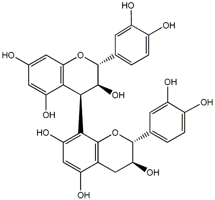 InChI=1S/C30H26O12/c31-13-7-20(37)24-23(8-13)41-29(12-2-4-16(33)19(36)6-12)27(40)26(24)25-21(38)10-17(34)14-9-22(39)28(42-30(14)25)11-1-3-15(32)18(35)5-11/h1-8,10,22,26-29,31-40H,9H2/t22-,26+,27-,28-,29+/m0/s1 |