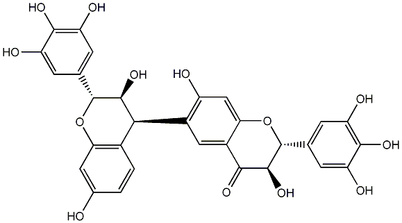 O=C1c2cc([C@H]3c4ccc(O)cc4O[C@H](c4cc(O)c(O)c(O)c4)[C@H]3O)c(O)cc2O[C@H](c2cc(O)c(O)c(O)c2)[C@H]1O |