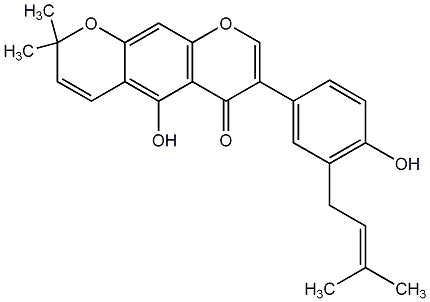 InChI=1S/C25H24O5/c1-14(2)5-6-16-11-15(7-8-19(16)26)18-13-29-21-12-20-17(9-10-25(3,4)30-20)23(27)22(21)24(18)28/h5,7-13,26-27H,6H2,1-4H3 |