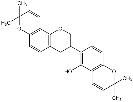 InChI=1S/C25H26O4/c1-24(2)11-9-18-20(28-24)8-6-17(22(18)26)16-13-15-5-7-21-19(23(15)27-14-16)10-12-25(3,4)29-21/h5-12,16,26H,13-14H2,1-4H3/t16-/m1/s1 |