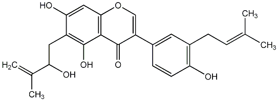 InChI=1S/C25H26O6/c1-13(2)5-6-16-9-15(7-8-19(16)26)18-12-31-22-11-21(28)17(10-20(27)14(3)4)24(29)23(22)25(18)30/h5,7-9,11-12,20,26-29H,3,6,10H2,1-2,4H3/t20-/m1/s1 |