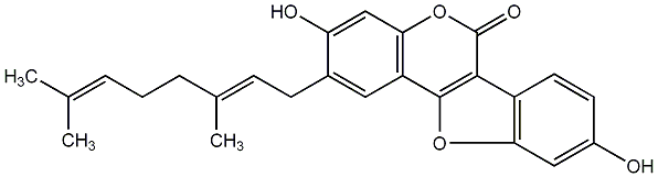 CC(C)=CCC/C(C)=C/Cc1cc2c(cc1O)oc(=O)c1c3ccc(O)cc3oc21 |