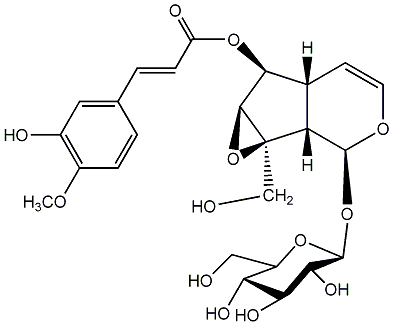 COc1ccc(/C=C/C(=O)O[C@H]2[C@@H]3C=CO[C@@H](O[C@@H]4OC(CO)[C@@H](O)C(O)[C@@H]4O)[C@@H]3[C@@]3(CO)O[C@@H]23)cc1O |