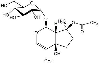InChI=1S/C18H28O10/c1-8-7-25-16(14-17(3,28-9(2)20)4-5-18(8,14)24)27-15-13(23)12(22)11(21)10(6-19)26-15/h7,10-16,19,21-24H,4-6H2,1-3H3/t10-,11-,12+,13+,14-,15-,16+,17+,18+/m1/s1 |