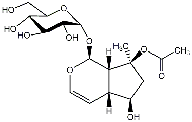 InChI=1S/C17H26O10/c1-7(19)27-17(2)5-9(20)8-3-4-24-15(11(8)17)26-16-14(23)13(22)12(21)10(6-18)25-16/h3-4,8-16,18,20-23H,5-6H2,1-2H3/t8-,9-,10+,11-,12-,13-,14+,15+,16?,17+/m1/s1 |