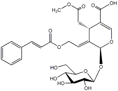 COC(=O)C[C@@H]1C(C(=O)O)=CO[C@@H](O[C@@H]2OC(CO)[C@@H](O)C(O)[C@@H]2O)/C1=C/COC(=O)/C=C/c1ccccc1 |