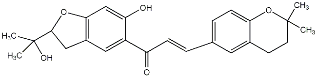 InChI=1S/C25H28O5/c1-24(2)10-9-16-11-15(6-8-21(16)30-24)5-7-19(26)18-12-17-13-23(25(3,4)28)29-22(17)14-20(18)27/h5-8,11-12,14,23,27-28H,9-10,13H2,1-4H3/b7-5+/t23-/m1/s1 |