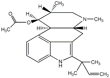 InChI=1S/C23H30N2O2/c1-7-23(4,5)22-16-11-18-20(15-9-8-10-17(24-22)19(15)16)21(27-14(3)26)13(2)12-25(18)6/h7-10,13,18,20-21,24H,1,11-12H2,2-6H3/t13-,18-,20-,21+/m1/s1 |