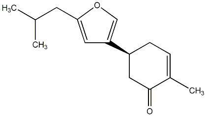 InChI=1S/C15H20O2/c1-10(2)6-14-7-13(9-17-14)12-5-4-11(3)15(16)8-12/h4,7,9-10,12H,5-6,8H2,1-3H3/t12-/m0/s1 |