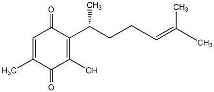 Perezone (R)-2-(1,5-Dimethyl-4-hexenyl)-3-hydroxy-5-methyl-2,5-cyclohexadiene-1,4-dione |