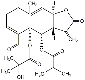 InChI=1S/C23H30O8/c1-12(2)20(25)30-19-17-14(4)21(26)29-16(17)10-13(3)8-7-9-15(11-24)18(19)31-22(27)23(5,6)28/h9-12,16-19,28H,4,7-8H2,1-3,5-6H3/b13-10+,15-9-/t16-,17+,18-,19-/m0/s1 |