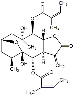 InChI=1S/C25H34O9/c1-8-12(3)21(26)32-19-17-15(6)23(28)31-18(17)20(33-22(27)13(4)9-2)24(7,29)11-16-10-14(5)25(19,30)34-16/h8-9,14,16-20,29-30H,6,10-11H2,1-5,7H3/b12-8-,13-9-/t14-,16+,17-,18+,19-,20-,24+,25-/m0/s1 |