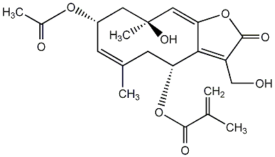 C=C(C)C(=O)O[C@@H]1C/C(C)=C[C@H](OC(C)=O)C[C@](C)(O)/C=C2/OC(=O)C(CO)=C21 |
