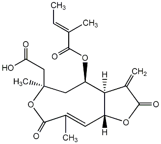 InChI=1S/C20H24O8/c1-6-10(2)17(23)27-14-8-20(5,9-15(21)22)28-18(24)11(3)7-13-16(14)12(4)19(25)26-13/h6-7,13-14,16H,4,8-9H2,1-3,5H3,(H,21,22)/b10-6+,11-7+/t13-,14+,16-,20+/m0/s1 |