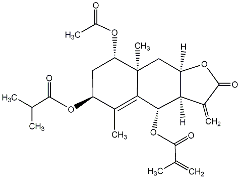 InChI=1S/C25H32O8/c1-11(2)22(27)31-16-9-18(30-15(7)26)25(8)10-17-19(14(6)24(29)32-17)21(20(25)13(16)5)33-23(28)12(3)4/h11,16-19,21H,3,6,9-10H2,1-2,4-5,7-8H3/t16-,17+,18-,19-,21-,25+/m0/s1 |