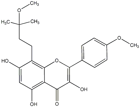 Brevicornin 3,5,7-Trihydroxy-8-(3-methoxy-3-methylbutyl)-2-(4-methoxyphenyl)-4H-1-benzopyran-4-one |