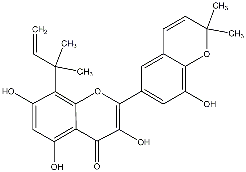 Broussonol A 8-(1,1-Dimethyl-2-propenyl)-3,5,7-trihydroxy-2-(8-hydroxy-2,2-dimethyl-2H-1-benzopyran-6-yl)-4H-1-benzopyran-4-one |