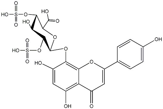 O=C(O)C1O[C@@H](Oc2c(O)cc(O)c3c(=O)cc(-c4ccc(O)cc4)oc23)C(OS(=O)(=O)O)[C@@H](O)[C@@H]1OS(=O)(=O)O |