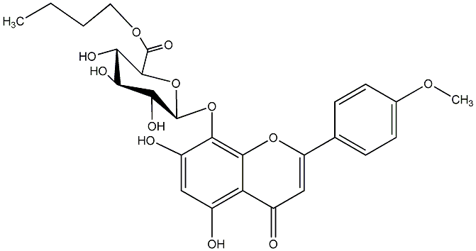 Isoscutellarein 4'-methyl ether 8-(6''-n-butylglucuronide) 5,7-Dihydroxy-2-(4-methoxyphenyl)-4-oxo-4H-1-benzopyran-8-yl beta-D-glucopyranosiduronic acid butyl ester |